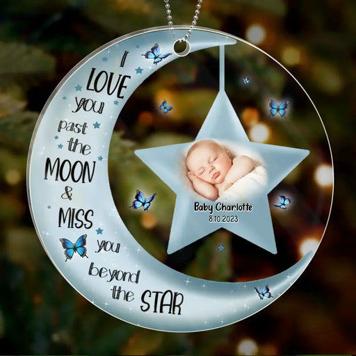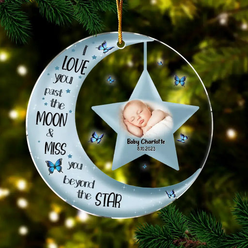 View full detailsCustom Personalized Memorial Circle Acrylic Ornament - Upload Photo - Memorial Gift For Christmas/ Family Member/ Baby Loss - I Love You Past The Moon And Miss You Beyond The Stars