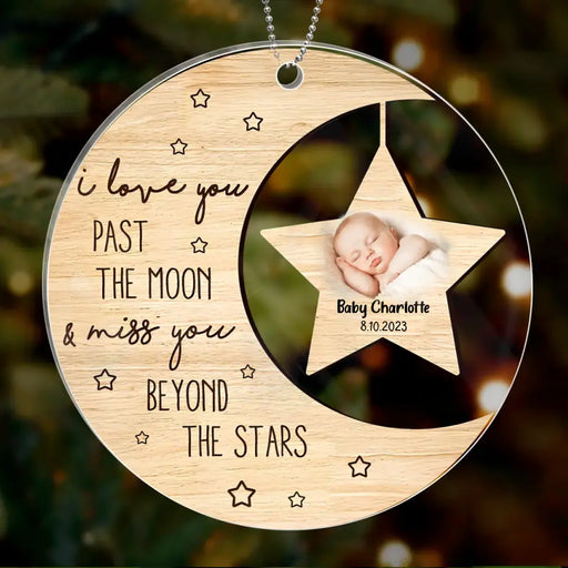 View full detailsPersonalized Memorial Photo Circle Acrylic Ornament - Memorial Gift For Christmas/Family Member/Baby Loss - I Love You Past The Moon And Miss You Beyond The Stars
