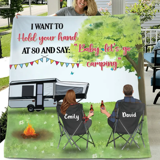View full detailsPersonalized Camping Fleece Throw Blanket & Quilt - Gift Idea For Camping Lovers - I Want To Hold Your Hand At 80 And Say: Baby, Let's Go Camping