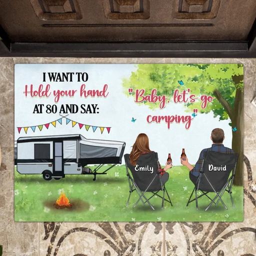 View full detailsPersonalized Camping Doormat - Gift Idea For Camping Lover/Couple - I Want To Hold Your Hand At 80 And Say:" Baby, Let's Go Camping"