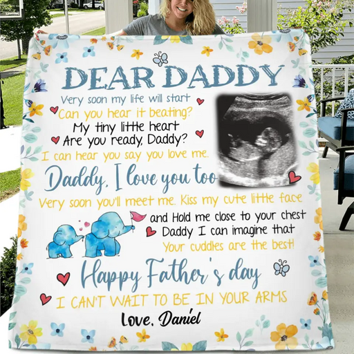 View full detailsPersonalized Baby Photo Fleece Throw Blanket/Quilt - Gift Idea For Father's Day - Dear Daddy Very Soon My Life Will Start
