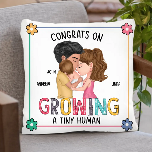 View full detailsPersonalized Family Pillow Cover/Fleece Throw Blanket/Quilt Blanket - Gift Idea For Parents & Baby - Congrats On Growing A Tiny Human