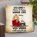 Personalized Cat Mom Pillow Cover - Up to 2 Cats - Woman with Wine and Cat