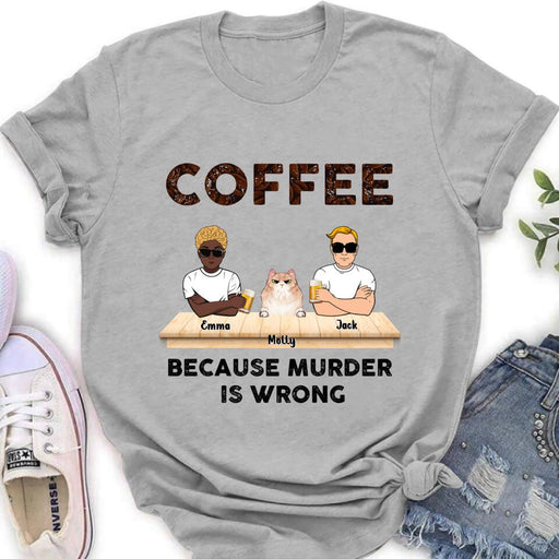 View full detailsPersonalized Cat Shirt - Gift Idea For Cat Lovers - Up to 6 Cats - Coffee Because Murder Is Wrong