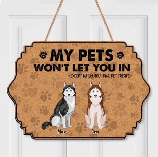 View full detailsPersonalized Pets Wooden Sign - Gift Idea for Dog/Cat Lovers - Up to 6 Pets - My Pets Won't Let You In (Except When You Have Pet Treats)