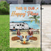 Personalized Camping Flag Sign - Gift Idea For Family/Camping Lover - Couple/Parents With Up to 2 Kids And 4 Dogs - This Is Our Happy Place