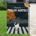 Personalized Halloween Cat Flag Sign - Gift Idea For Cat Lovers - Up to 6 Cats - Welcome Foolish Mortals