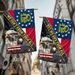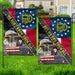 Features a sleeve at the top that fits standard flagpoles or stands. The flag stand is not included.