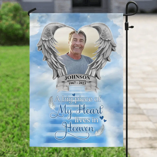 View full detailsCustom Personalized Memorial Photo Flag Sign - Memorial Gift Idea for Father's Day/Mother's Day - A Big Piece Of My Heart Lives In Heaven