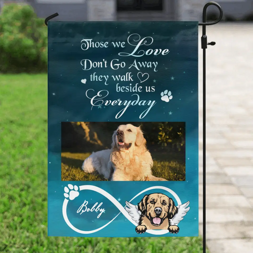 View full detailsCustom Personalized Memorial Photo Flag Sign - Memorial Gift Idea for Dog/Cat Owners - Those We Love Don't Go Away They Walk Beside Us Everyday