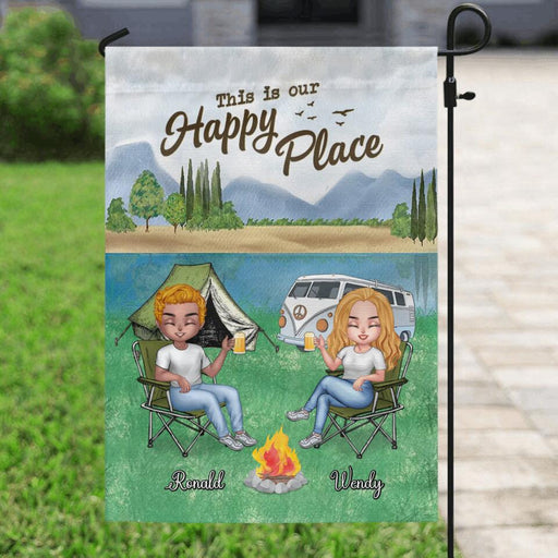 View full detailsPersonalized Camping Flag Sign - Up to 4 People and 2 Pets - Gift Idea For Couple/Camping/Dog/Cat Lovers - This Is Our Happy Place