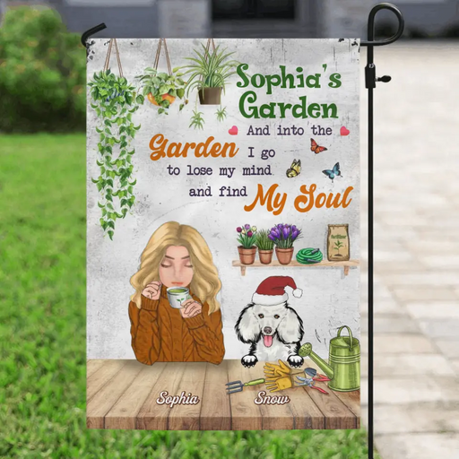 View full detailsPersonalized Dog Mom Flag Sign - Gift Idea For Dog Lover with up to 4 Dogs - And Into The Garden, I Go To Lose My Mind And Find My Soul