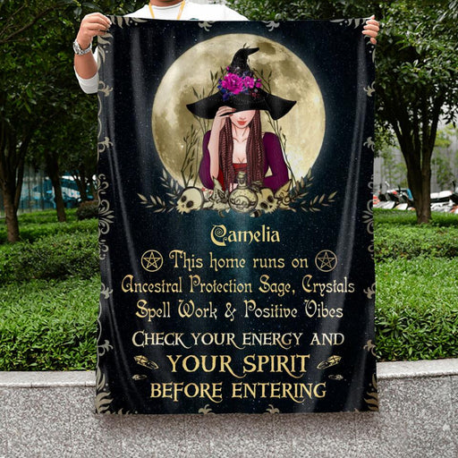 View full detailsCustom Personalized Witch Flag Sign - Gifts Idea For Halloween - This Home Runs On Ancestral Protection Sage