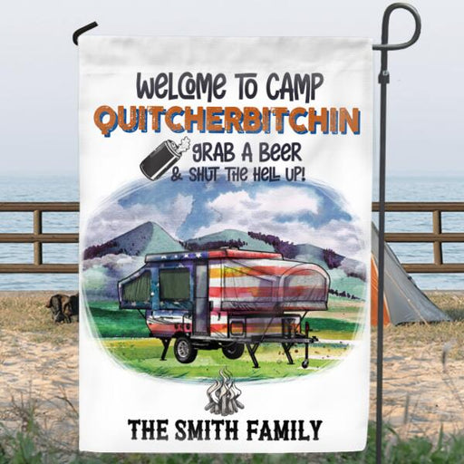 View full detailsPersonalized Camping Flag - Best Gift Idea For Camping Lovers - Welcome To Camp Quitcherbitchin, Grab A Beer & Shut The Hell Up!
