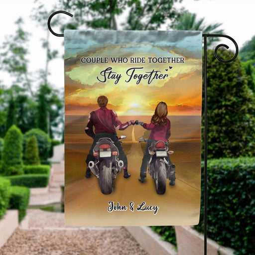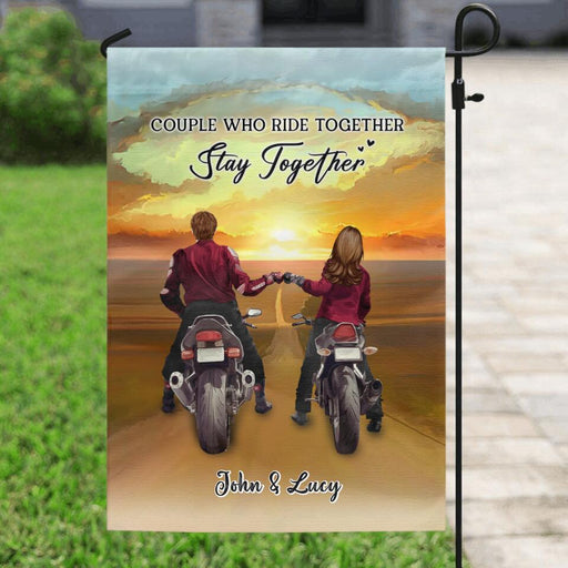 Personalized Biker Garden Flag Sign - Gift Idea For Couple/ Parents/ Wedding/ Anniversary - Couple Who Ride Together Stay Together