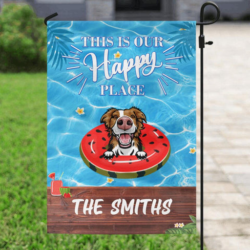 View full detailsPersonalized Family Pool Garden Flag - Family Name with up to 4 Dogs - This is our happy place - 4UJYU0