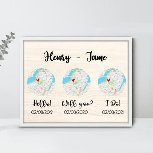 Personalized Map Poster - Best Gift For Couple - Custom Name, Date & Location