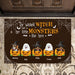Personalized Halloween Dogs Doormat - Up to 5 Dogs - The Wicked Witch And Her Little Monsters Live Here Halloween
