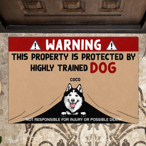 View full detailsPersonalized Dog Doormat - Gift For Dog Lovers with up to 4 Dogs - This property is protected by highly trained dog