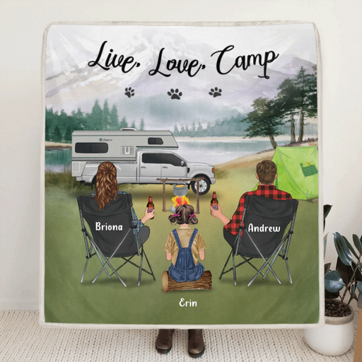 View full detailsPersonalized Camping Fleece Blanket - Parents Up to 3 Kids & 3 Dogs - Gift Idea For The Whole Family - Live, Love, Camp - 341148