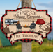 Customize this rustic wooden sign with a couple, up to 2 kids, and 3 pets, making it a special keepsake for your RV, campsite, or home.