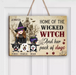 Personalized Witch Dog Wooden Sign - Home Of The Wicked Witch And Her Pack Of Dogs - Halloween Gift Idea For Family/Witch/Dog Lovers With Up to 3 Dogs