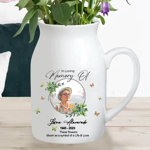Personalized In Loving Memory Ceramic Flower Vase - Upload Photo - Memorial Gift Idea For Family Member - These Flowers Bloom As A Symbol Of A Life & Love