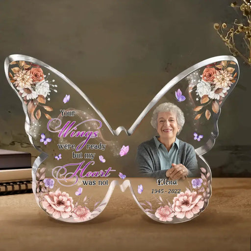 View full detailsPersonalized Memorial Photo Butterfly Acrylic Plaque - Memorial Gift Idea For Family Member - Your Wings Were Ready But My Heart Was Not