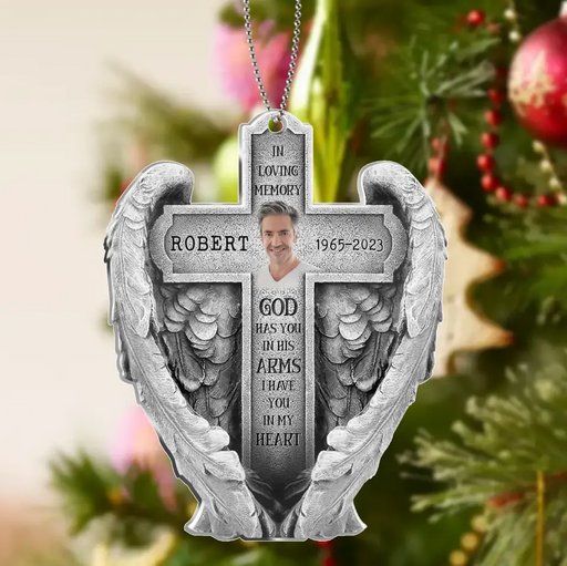 View full detailsCustom Personalized Memorial Wings Acrylic Ornament - Upload Photo - Memorial Gift Idea For Christmas/ Family Member - God Has You In His Arms I Have You In My Heart