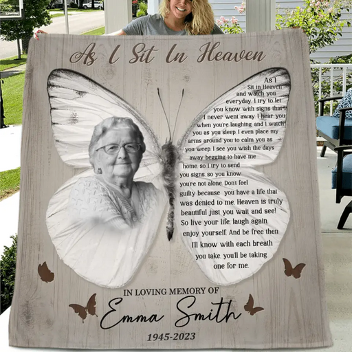 View full detailsPersonalized Memorial Photo Fleece Throw Blanket & Quilt - Memorial Gift for Family - As I Sit In Heaven