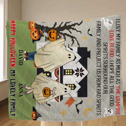 View full detailsPersonalized Halloween Ghost Family Quilt/Fleece Throw Blanket - Halloween Gift For Couple/Family - Up to 5 People With 4 Pets - I Love My Family