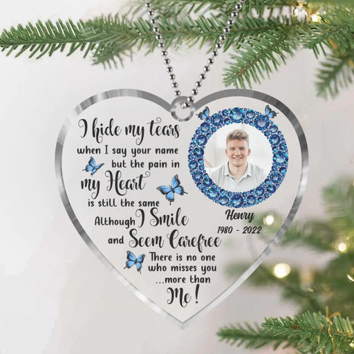 View full detailsCustom Personalized Memorial Heart Acrylic Ornament - Christmas/Memorial Gift For Family - There Is No One Who Misses You More Than Me