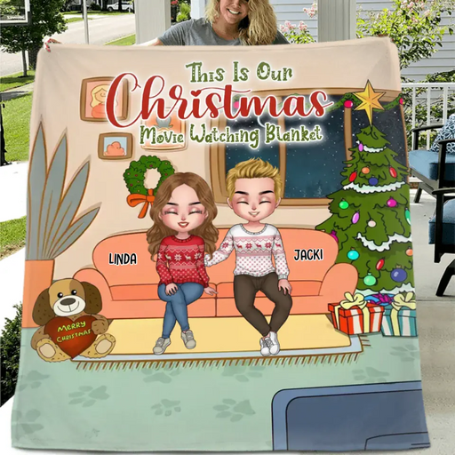 View full detailsPersonalized Family Movie Watching Fleece Throw Blanket/Quilt - Adult/Couple With Up to 2 Kids And 3 Pets - Christmas Gift For Couple/Family/Dog/Cat Lover - This Is Our Christmas Movie Watching Blanket