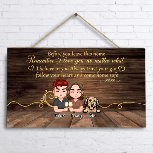 View full detailsPersonalized Family Wooden Sign - Up to 4 Adults With 4 Kids And Dogs - Gift Idea For Family - Before You Leave This Home Remember I Love You No Matter What