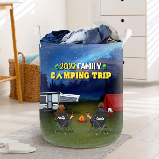 Personalized Family Camping Trip Foldable Laundry Basket - Couple/Single Parent/ Parents With Up to 3 Kids And 4 Pets - Gift Idea For Whole Family/Camping Lover