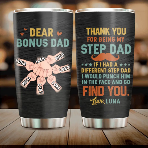 View full detailsPersonalized Bonus Father Tumbler - Gift Idea For Father's Day - Up to 6 Kids - Thank you for being my step dad