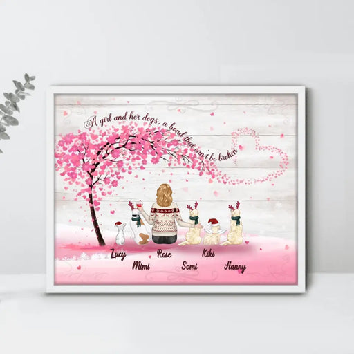 View full detailsPersonalized Dog Mom/Dad Poster - Mom/Dad With Up To 5 Dogs - Gift Idea For Dog Lovers - A Girl And Her Dogs, A Bond That Can't Be Broken