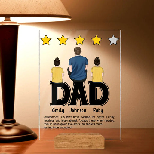 View full detailsPersonalized Dad Rating Acrylic Plaque - Father's Day Gift Idea For Dad - Up to 4 Kids - Awesome! Couldn't Have Wished For Better