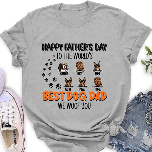 Personalized Best Dog Dad T-shirt/Long Sleeve/Sweatshirt/Hoodie - Up to 6 Dogs - Gift Idea For Dog Lovers - Happy Father's Day To The World's Best Dog Dad We Woof You