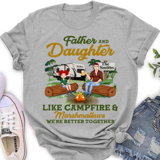View full detailsPersonalized Camping Dad Shirt/Pullover Hoodie - Father's Day Gift For Camping Lover - Dad/Parents With Up to 2 Kids And 4 Dogs - Father And Daughter Like Campfire & Marshmallows