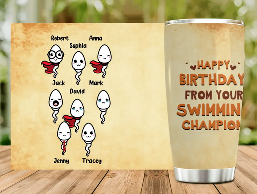 View full detailsPersonalized Happy Birthday Tumbler - Birthday Gift Idea For Dad - Happy Birthday! From Your Swimming Champion!