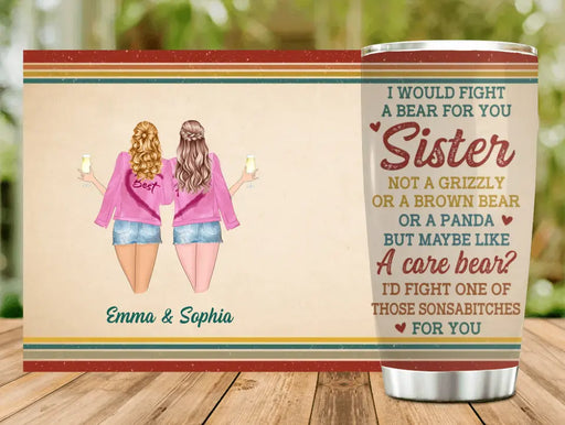 View full detailsPersonalized Besties/Sisters Tumbler - Gifts Idea for Besties/Friends/Sisters - I Would Fight A Bear For You Sister