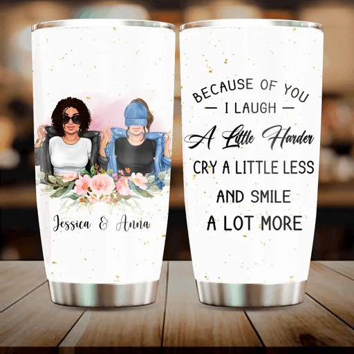 View full detailsPersonalized Besties Tumbler - Gift Idea For Friends/Sisters/Besties - Because Of You I Laugh A Little Harder