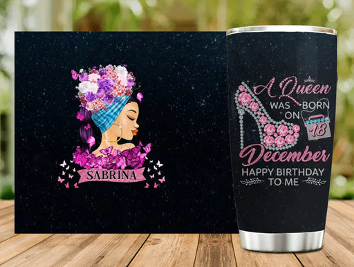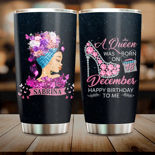 View full detailsPersonalized Birthday Black Girl Tumbler - Gift Idea for Birthday/Friends - A Queen Was Born On 18th December Happy Birthday To Me