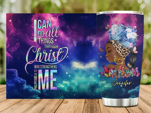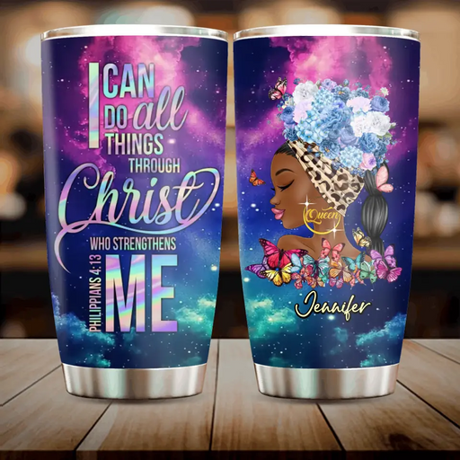 View full detailsPersonalized Birthday Black Girl Tumbler - Gift Idea for Birthday/Friends - I Can Do All Things Through Christ Who Strengthens Me