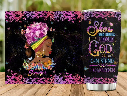 View full detailsPersonalized Black Girl Tumbler - Gift Idea for Birthday/Friends - She Who Kneels Before God Can Stand Before Anyone