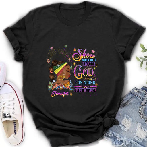 View full detailsPersonalized Black Girl Shirt/Hoodie - Gift Idea for Birthday/Friends - She Who Kneels Before God Can Stand Before Anyone
