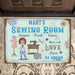 Personalized Sewing Chibi Girl Doormat - Gift For Sewing Lovers/Mother's Day - Sewing Room Imagine, Create, Inspire Made With Love Open 24 Hours