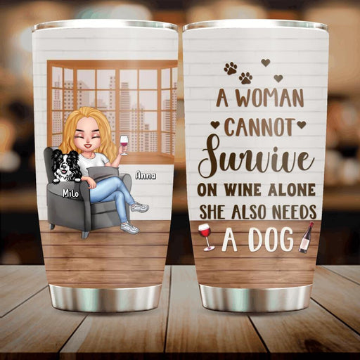 View full detailsPersonalized Pet Mom Tumbler - Up to 4 Dogs/Cats - Mother's Day Gift Idea For Dog/Cat Lovers - A Woman Cannot Survive On Wine Alone She Also Needs A Dog