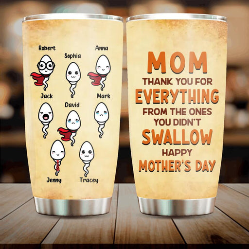 View full detailsPersonalized Happy Mother's Day Tumbler - Mother's Day Gift Idea - Mom Thank You For Everything From The Ones You Didn't Swallow